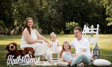 Iki 1 val. fotografavimas krikštynų dieną (ceremonija ir mini fotosesija su giminėmis prie bažnyčios);